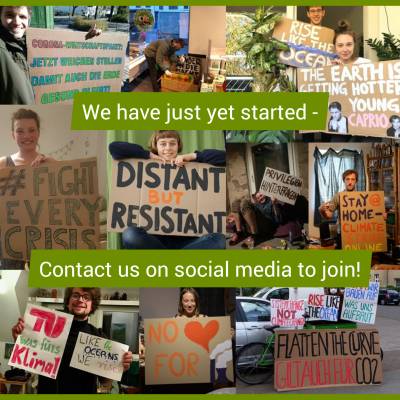 - Andere Aktivisti unterstützen (z.B. andere Students for Future, FFF Berlin, FFF Germany, im Dannenröder Forst, Hambacher Wald)