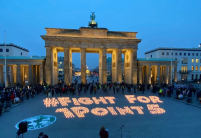 - Das Pariser Klimaabkommen jährt sich am 12. Dezember 2020 zum fünften Mal und es sieht so aus als könnten die dort beschlossenen Klimaziele mit dem aktuellen Kurs der Regierung nicht nicht eingehalten werden. Daher bewerben und unterstützen wir tatkräftig das Aufstellen von vielen nachhaltigen Kerzen in der Form von #FightForOnePointFive vor dem Brandenburger Tor.